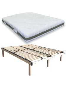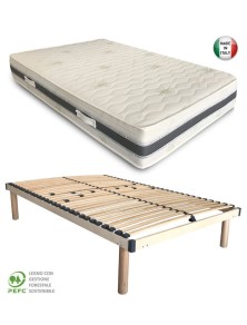 Rete in legno di betulla a doghe con cursori per la regolazione del peso zona lombare inclusa di materasso ortopedico a molle insacchettate con rivestimento anallergico e anti batterico in aloe vera sfoderabile altezza 22 cm, offerta disponibile nelle misure 80x190 - 120x190 - 160x190 cm.