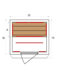 Sauna infrarossi 2 posti legno cedro rosso irradiatori carbonio con porta a destra apertura sinistra verso destra, temperatura massima di esercizio 65° C, possibilità di escludere il timer per 4 ore.