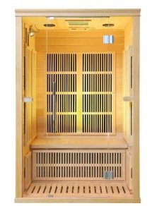 Sauna ad infrarossi 2 posti con irradiatori in ceramica, questa sauna ad infrarossi raggiunge la temperatura massima di 65°C.