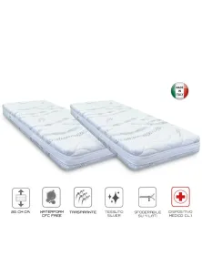 Rete elettrica motorizzata matrimoniale con movimenti indipendenti e telecomandi wireless senza fili, offerta compresa di due materassi singoli in waterfoam a doppia portanza con fascia traspirante rivestimento anallergico e anti batterico sfoderabile, materasso dispositivo medico classe 1.
