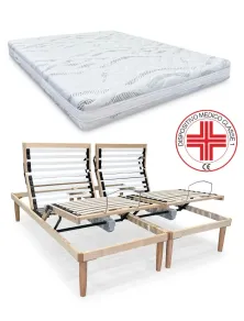 Rete elettrica motorizzata matrimoniale inclusa di telecomandi senza filo con due materassi singoli in memory a 5 zone di portanza differenziata con rivestimento sfoderabile in silver fibra d'argento. Rete motorizzata e materasso dispositivo medico classe 1.