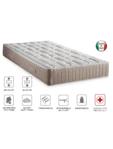 Materasso in waterfoam a doppia portanza lato più morbido e lato più rigido con rivestimento anallergico e antibatterico, sfoderabile nei quattro lati. Dispositivo medico classe 1.
