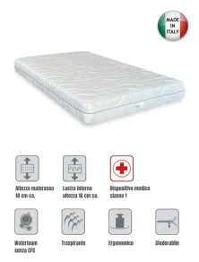 Materasso in waterfoam con rivestimento anallergico e anti batterico sfoderabile. Materasso dispositivo medico classe 1.