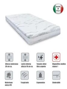Disponibile, consegna in 24/48 oreATTENZIONE: ULTIMI ARTICOLI IN MAGAZZINO! - MATERASSO IN WATERFOAM ERGONOMICO CON RIVESTIMENTO ANALLERCO ANTIBATTERICO SFODERABILE: WPOLI-SILVERECO
