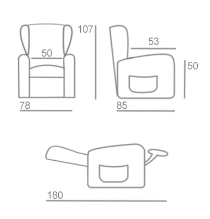 • Ingombro da poltrona in posizione normale 78 x 85 cm